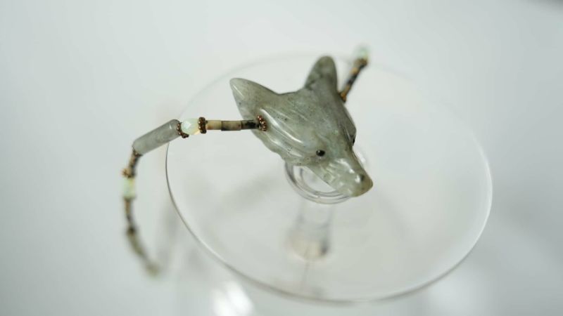 fox? wolf?のパーツは、Labradoriteを削って作られています。Parisで出会いとっても可愛くて一目惚れ。一つ一つの表情の違いが可愛くてお気に入りのアイテムになりました。