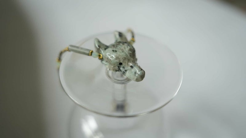 fox? wolf?のパーツは、アフリカンジャスパーを削って作られています。Parisで出会いとっても可愛くて一目惚れ。一つ一つの表情の違いが可愛くてお気に入りのアイテムになりました。
