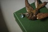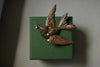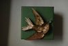 This piece beautifully represents a bird carrying fruit.