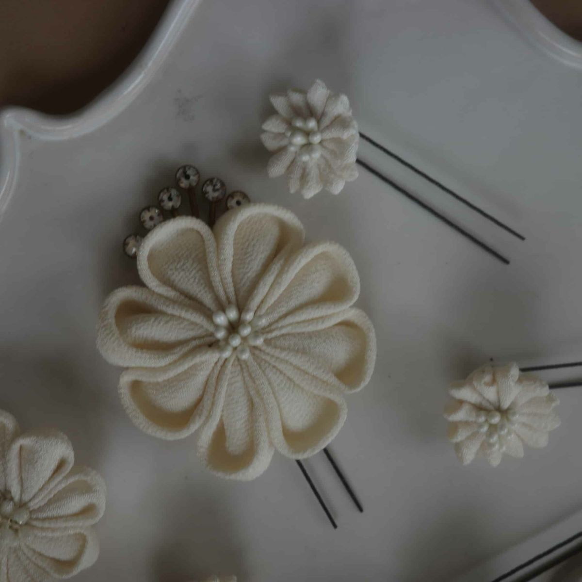 他の画像を見る rippmonster vintage 100 Price ¥ 33,000 税込 大切なお婆ちゃまの残した江戸シルクでひとつひとつ手作業でつまみ細工を製作し、組み立てた、唯一無二の作品です。6本セットです。繊細なためピンと生地を優しく止めています(固定していません。動きます) お気に入りに登録する