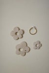 cookieのモチーフは専用の粘土を、micaが型抜きなしで一つ一つ形成して焼き上げております。