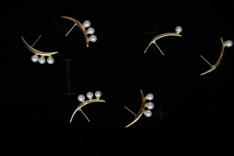 月の形をオリジナルで形成し、パールのはめ込みの強度さと繊細さのバランスにとことんこだわったこのシリーズが今回シンメトリーで耳に対して縦向きに着く為、モチーフものに挑戦しやすくなりました。
